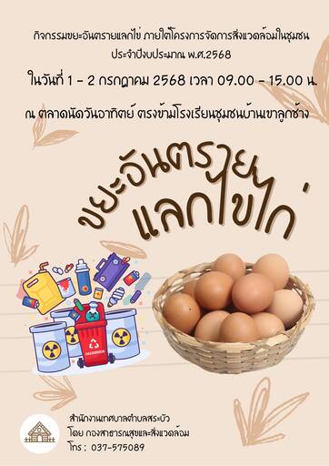 กิจกรรม"ขยะอันตรายแลกไข่ไก่" โครงการจัดการสิ่งแวดล้อมในชุมชน ประจำปีงบประมาณ พ.ศ.2568 |
